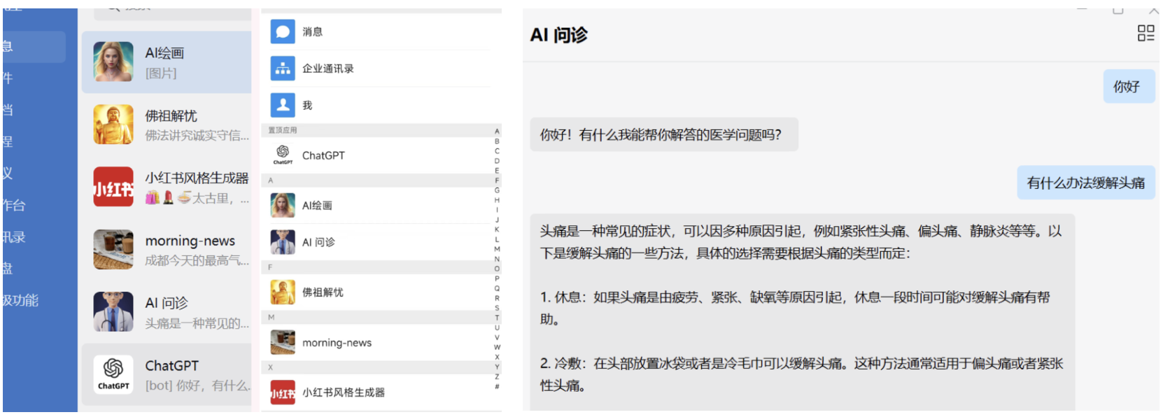 在企业微信中搜索刚创建的应用名称,即可直接对话: