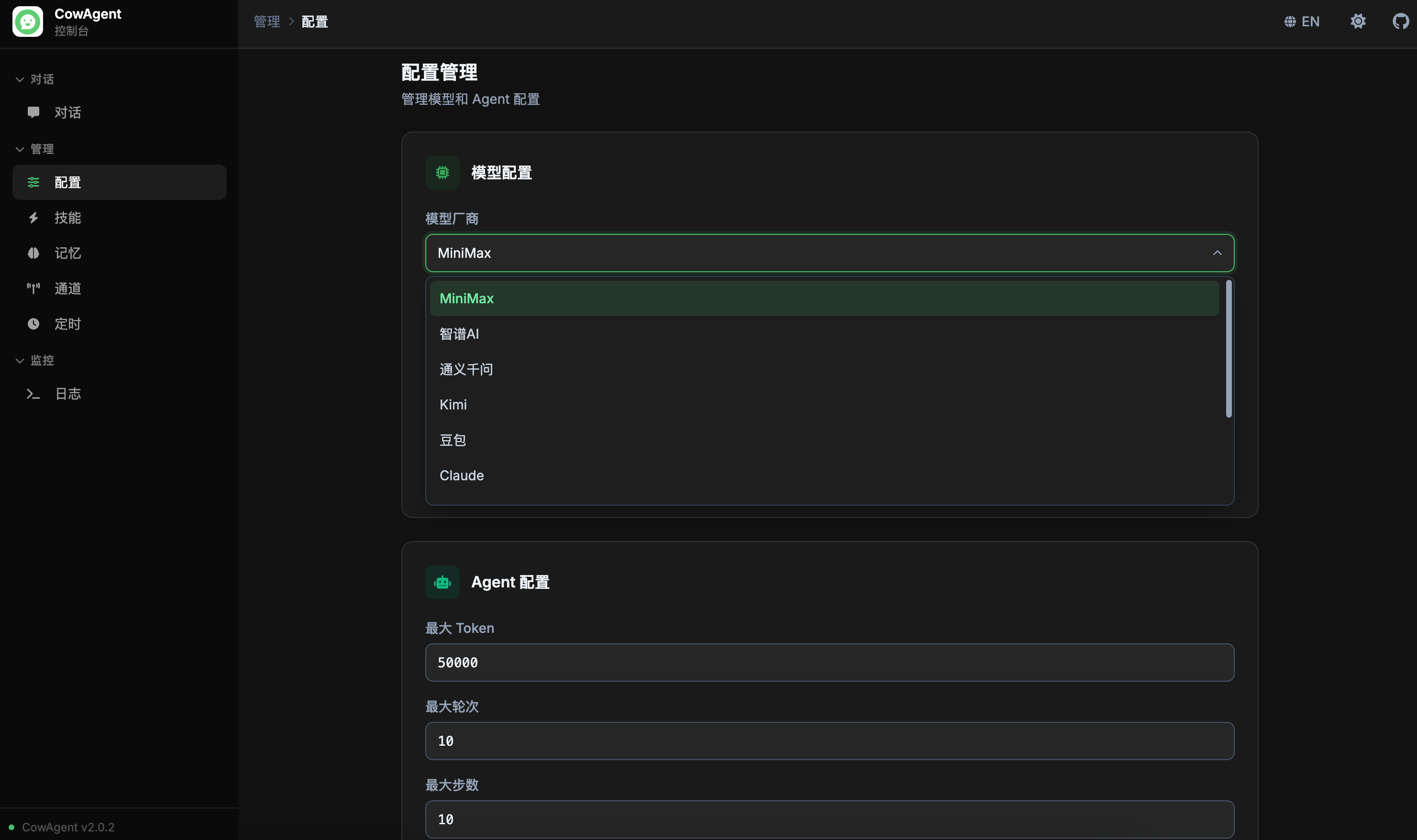 会话历史支持持久化存储至本地 SQLite 数据库,服务重启后会话上下文自动恢复,不再丢失。Web 控制台中的历史对话记录也会同步恢复展示。 相关提交:29bfbec, 9917552, 925d728🤖 新增模型